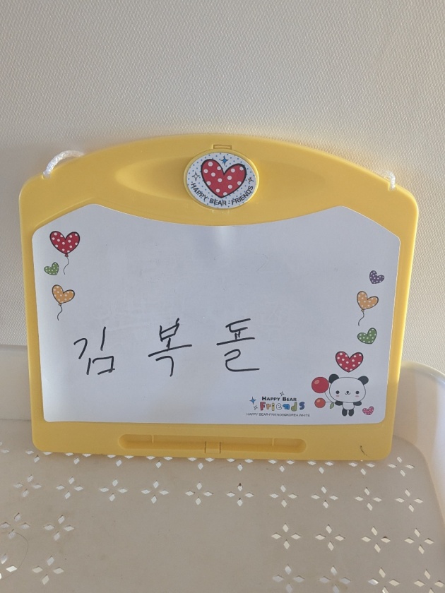 얼마 전 아빠는 장 폐색으로 응급실을 찾았다가 말기 암 선고를 받으셨다. 수술이나 항암 치료는 엄두도 내기 힘든 상황이라 다시 집으로 돌아오셨다. 간병과 돌봄을 위해 부모님 댁에 오래 머물게 되면서 복돌이와 보내는 시간도 길어졌다. 인지 장애에 도움이 될까 싶어 사다 둔 작은 화이트보드에 재미삼아 복돌이 이름을 적어 보시라고 했다. 아빠는 뜻밖에도 ‘김복돌’이라는 세 글자를 적으셨다. 아빠 닮아서 이 씨 아니냐고, 왜 복돌이는 김 씨냐고 물었더니 단호한 대답이 돌아왔다. “얘는 김 가다!” 왠지 모르겠지만 복돌이 성은 김 가였다. 아빠가 보기에 복돌이는 분명 가족은 가족인데 외부(?)에서 온 가족이기에 다른 성을 붙여야만 했던 건 아닐까 짐작할 뿐이다.